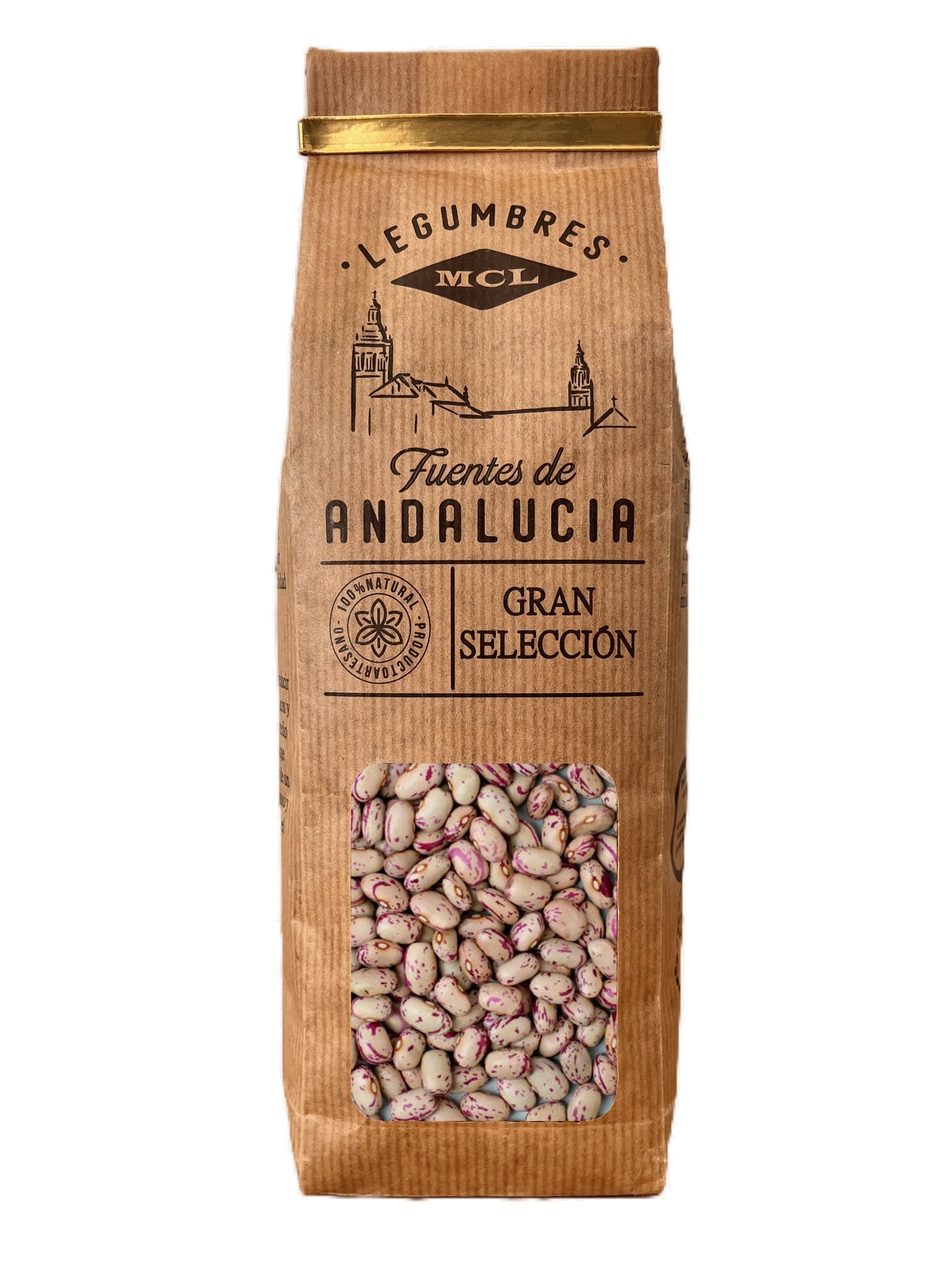 La alubia pinta es una legumbre de tamaño medio, con una piel veteada en tonos rojizos y marrones que se transforma en un tono uniforme al cocerse. Su sabor es profundo, su textura es cremosa y su piel fina garantiza una cocción uniforme sin que se deshaga.